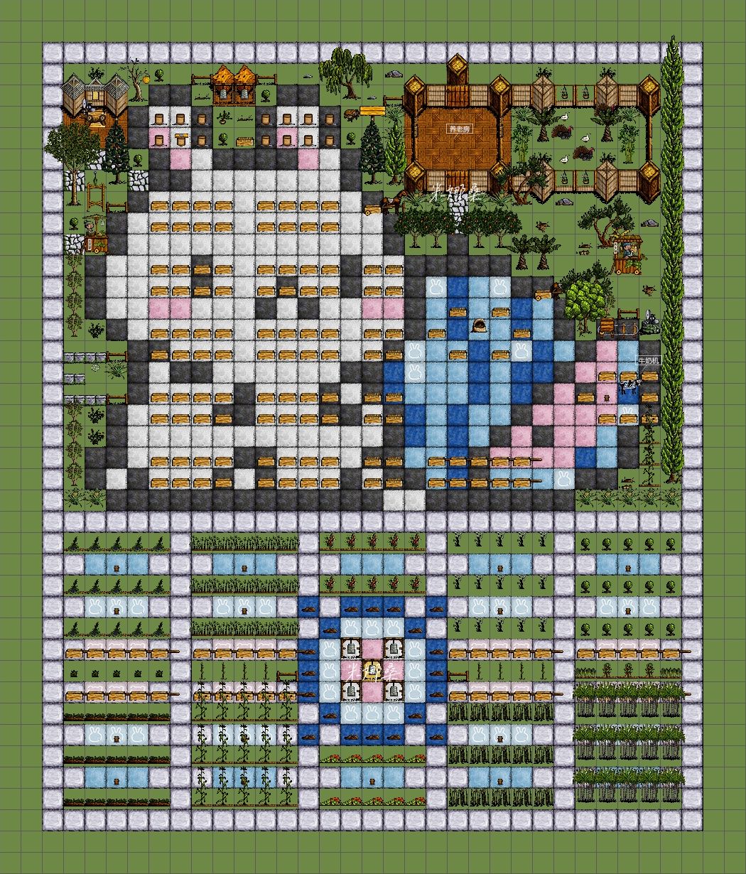 ③卡通兔子:叠食区+养老房+烤派厨房+牛奶机+菜地