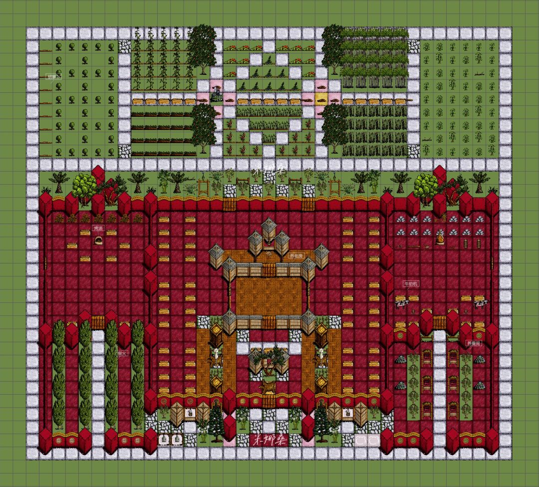 ④小型叠区:养老房+景区蚊子+烤派小厨房+小羊圈+牛奶机+菜地+叠食区+柴火堆肥区