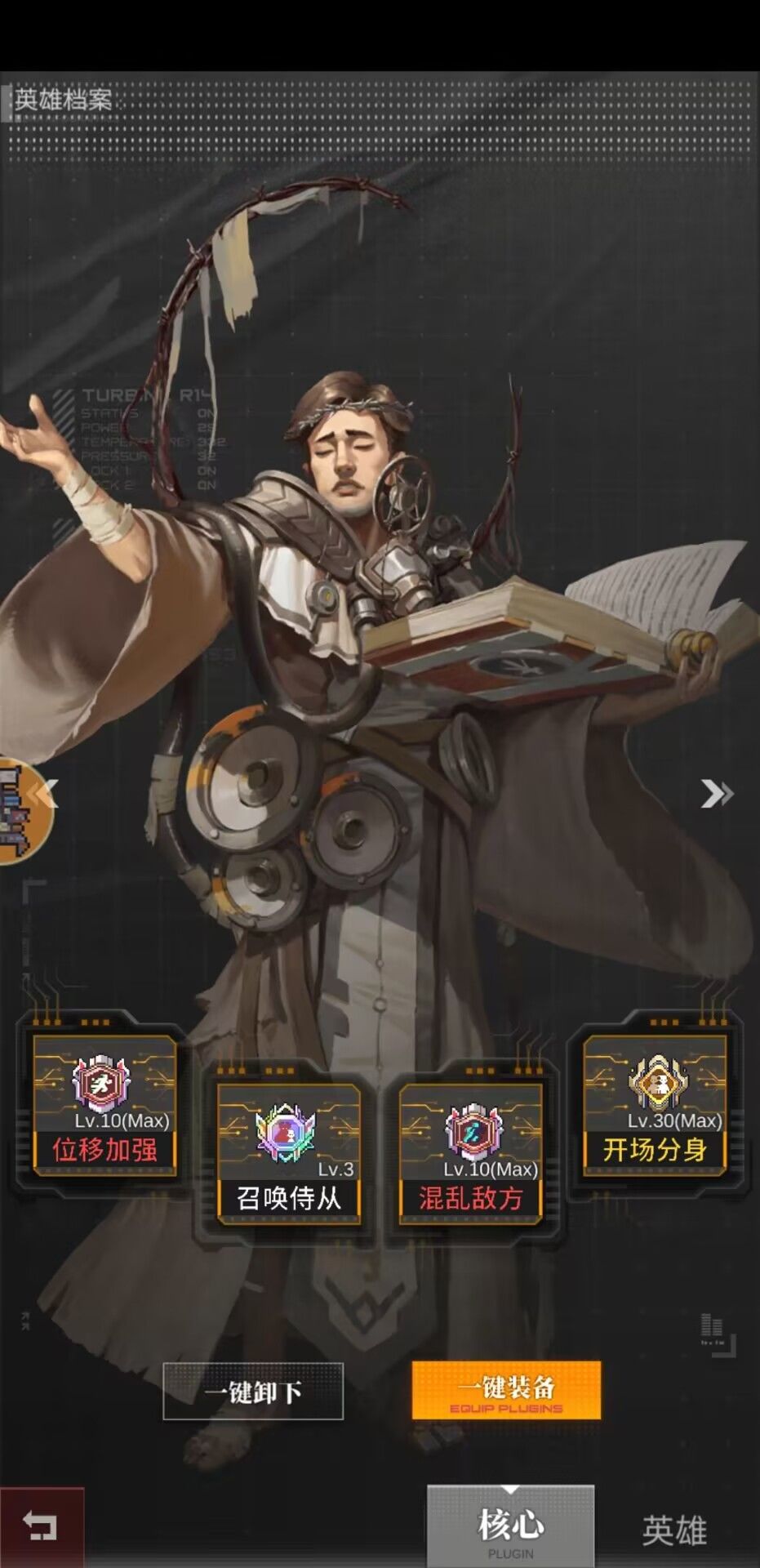 召唤侍从: 主动回合开始时,在随机空地召唤自身分身,分身继承白身属性。(1级~2级2个,3级~满级可召唤3个,没必要满级除非你碎片多)