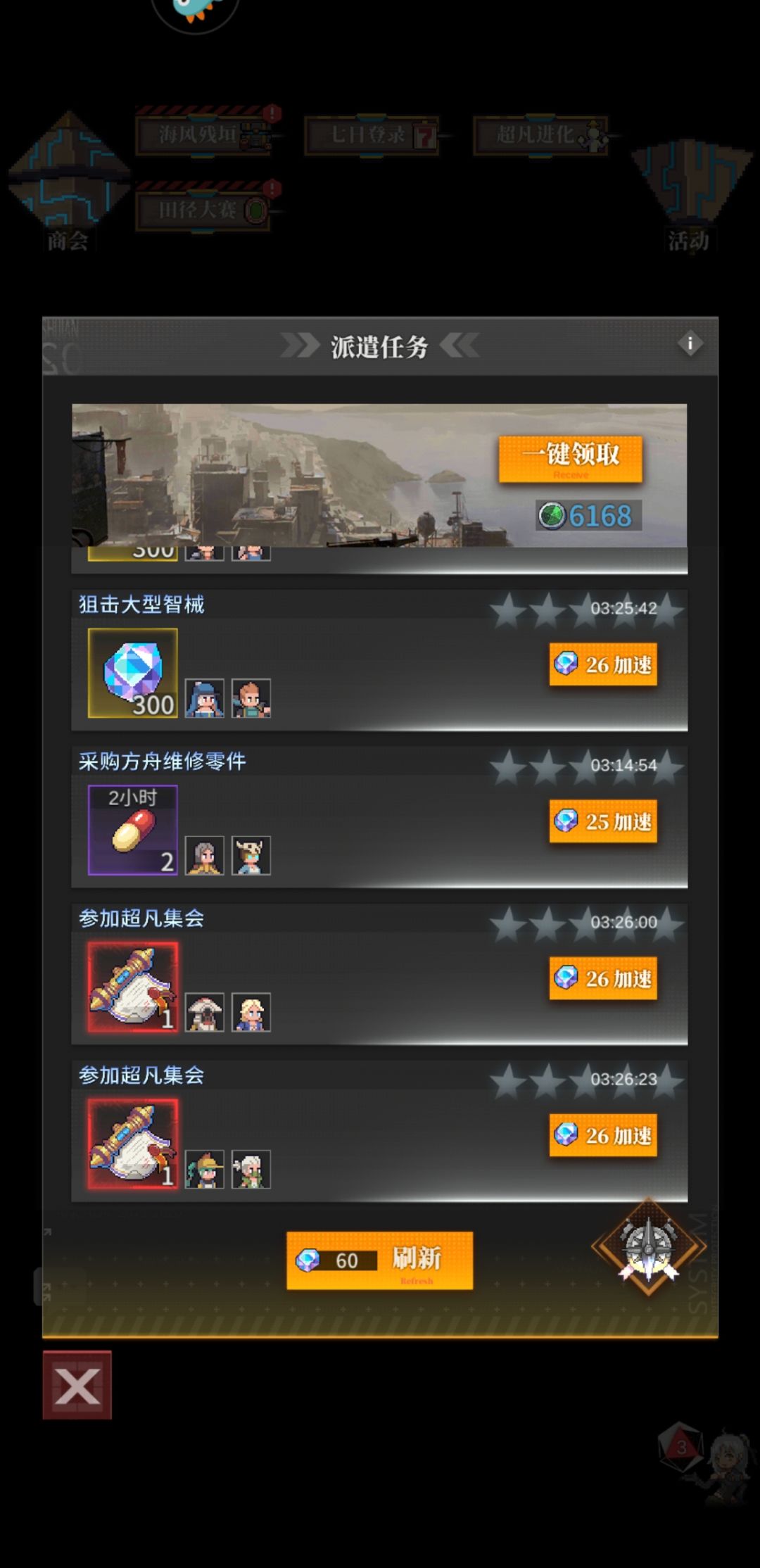 前期个人上线方舟日常优先级为先快速挂机(每天必拉满)--派遣(推荐领300-600钻,药丸,普通卷,UP卷,金碎片10片)--每日普通商店每日三折必买(1200英雄卡、1500钻阵营自选、1300红核心最好!)--抽卡--留有每天快速挂机(每天必拉满)的跟刷新派遣的钻(普通商店随机有40钻刷新卷,看到可以买,这样就省20钻刷一次),其他的就看情况抽吧,(萌新别用钻刷新英雄商店!!!)前期核心商店升级要用碎片不停的买买买才会升级,碎片怎么来得快?抽!!对吧?当然,氪佬随意648,您开心就好~抽卡的不确定性,不管是十连蓝天白云也好,还是那种用命在抽的十发六金,我们每天不是在抽卡就是为了抽卡而努力嘛不是~欧皇们来秀一秀你们有多欧,让我吸吸欧气~我目前最高才十连四金~~中后期阵容都差不多了,想要稳定刷碎片就买卡吧,抽就是看脸,看你自己了~