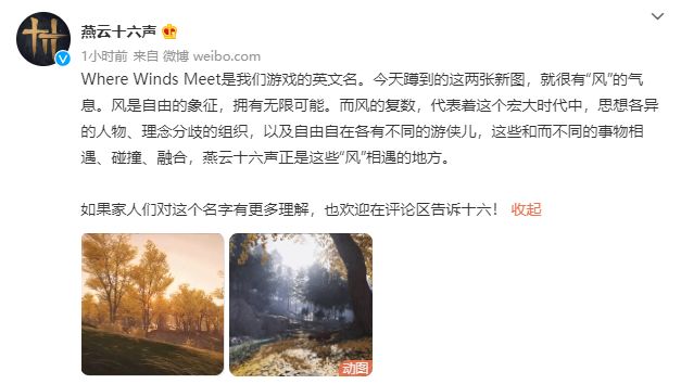 《燕云十六声》官方释义游戏名:风相遇之处皆是江湖