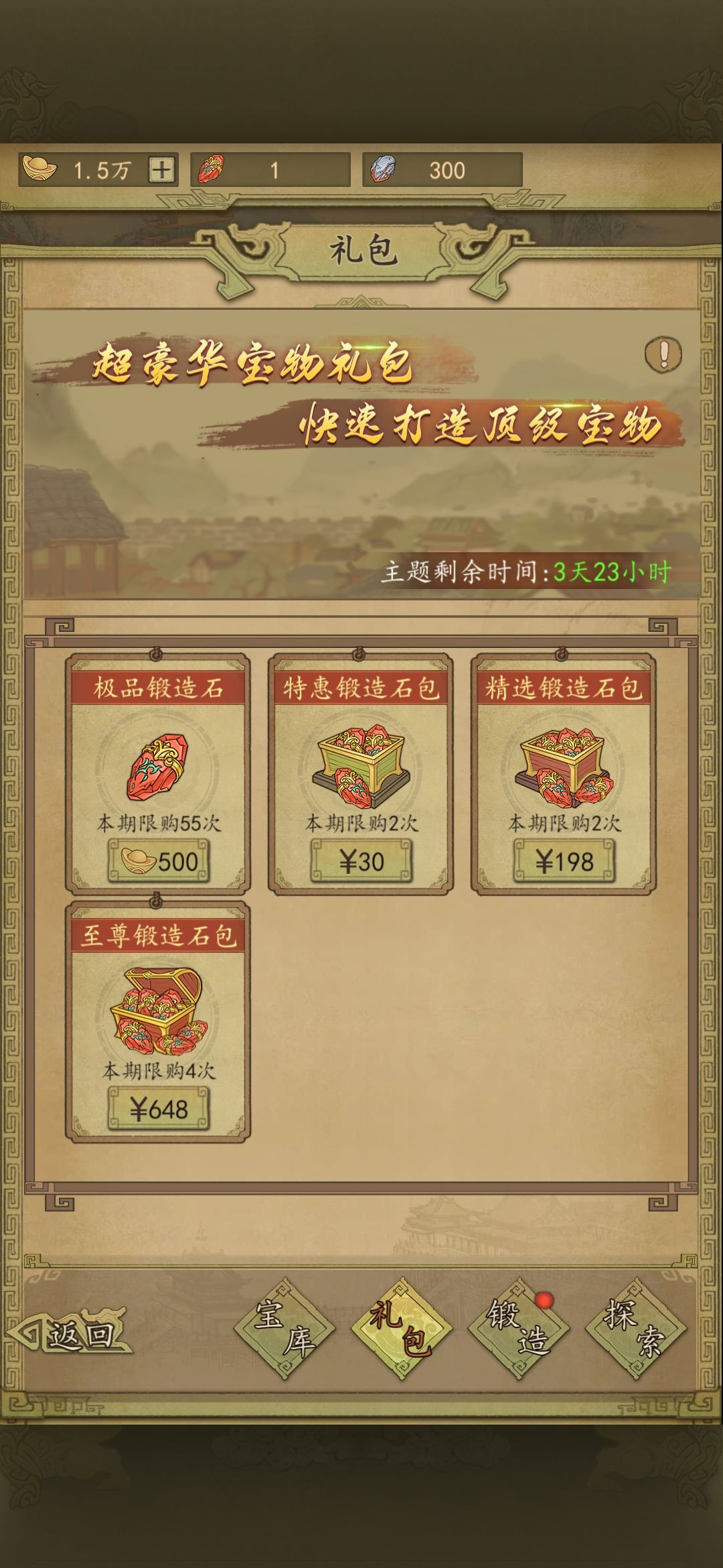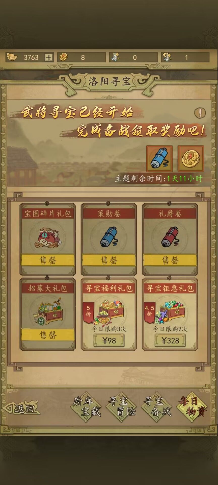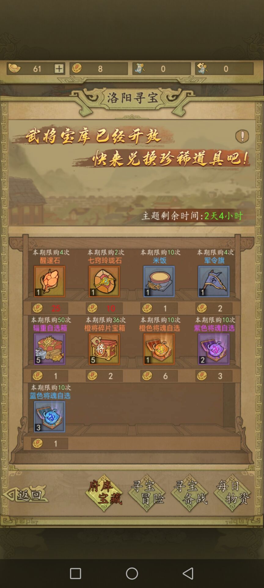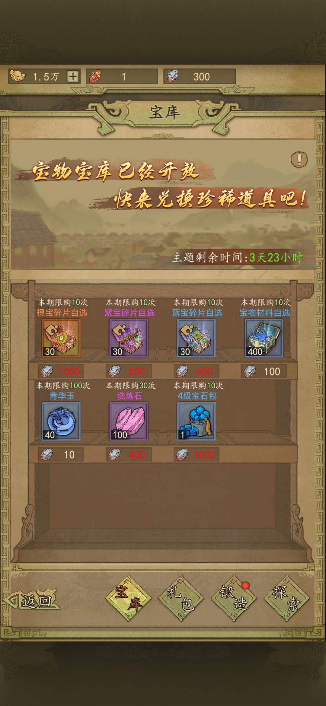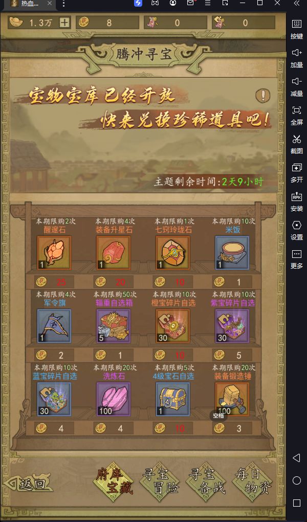 府库宝藏由于寻宝奖章有限优先购买醒髓石和七窍玲珑石