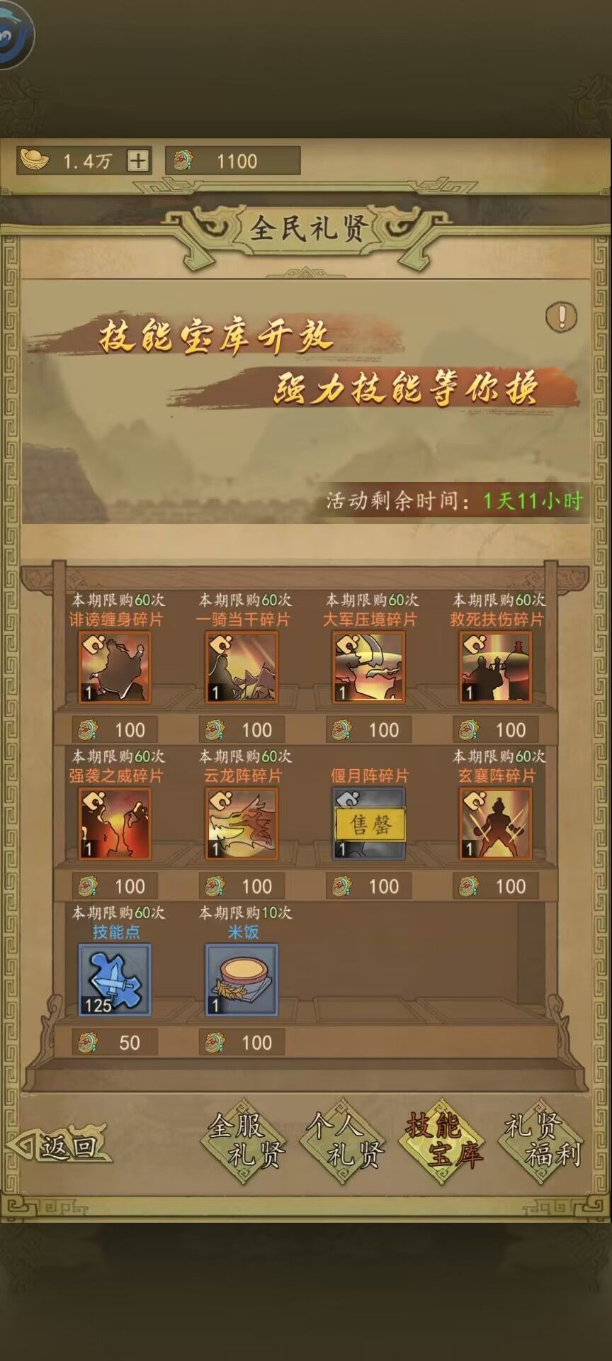 这个活动元宝购买肯定是要拉满的,这是礼贤强力技能的唯一来源。