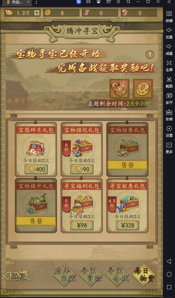 宝物是游戏内提升战力很重要的一个内容,所以这个活动需要去购买,但是官方也明白这个道理,所以将法宝制作的比较贵,但有能力的府君一定要把第一期全部拿下。以后的宝物遗迹由于太贵,不推荐继续购买。