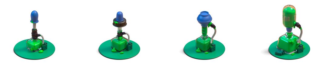 首先登场的是我们的涂料工厂。初级的涂料工厂只是将墨水瓶与滴管相连接,再加上一个细细的导管,可便捷地储备四处收集的涂料资源。但每次注入原材料后都需要手动摇匀,属实是个大工程。