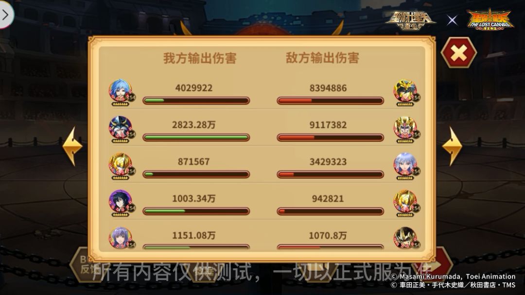 本次测试中,我们可以看到狮鹫·米诺斯优点十分突出,集混乱、叛变、群体加攻、免控等于一体,在多次叠加的攻击力的加持下,觉醒技的伤害也直接爆表;但他的不足之处也很明显,作为前排副T,免控技能会让他的站位十分靠前,这让他过多的承受技能和普攻的伤害,虽然有着“巨翼防护”提高其生存和续航能力,但物理角色念防不足的特点让其在面对神圣双子座·撒加的幻胧魔皇拳等单体技能时,生命值会有瞬间崩盘的风险,具体如何搭配就交由大家去选择了。