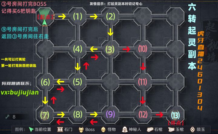 六转起灵副本可以参考一下这个路线,没有失误的话,一般可以一天走两次,图是我们群里的一个大佬探索之后做的,希望能帮到大家#新盗墓笔记手游#