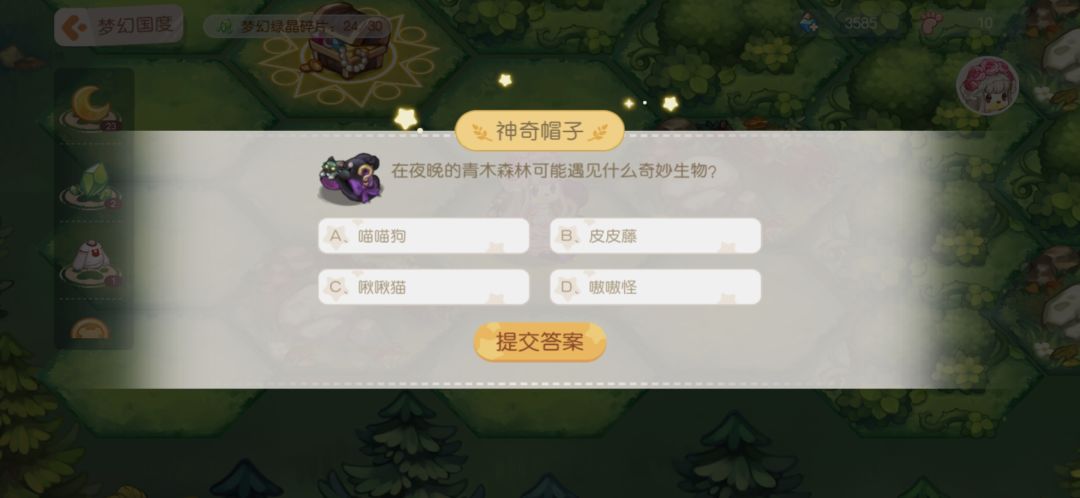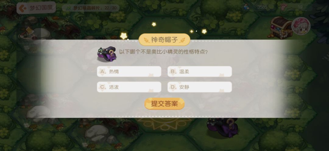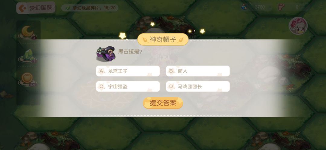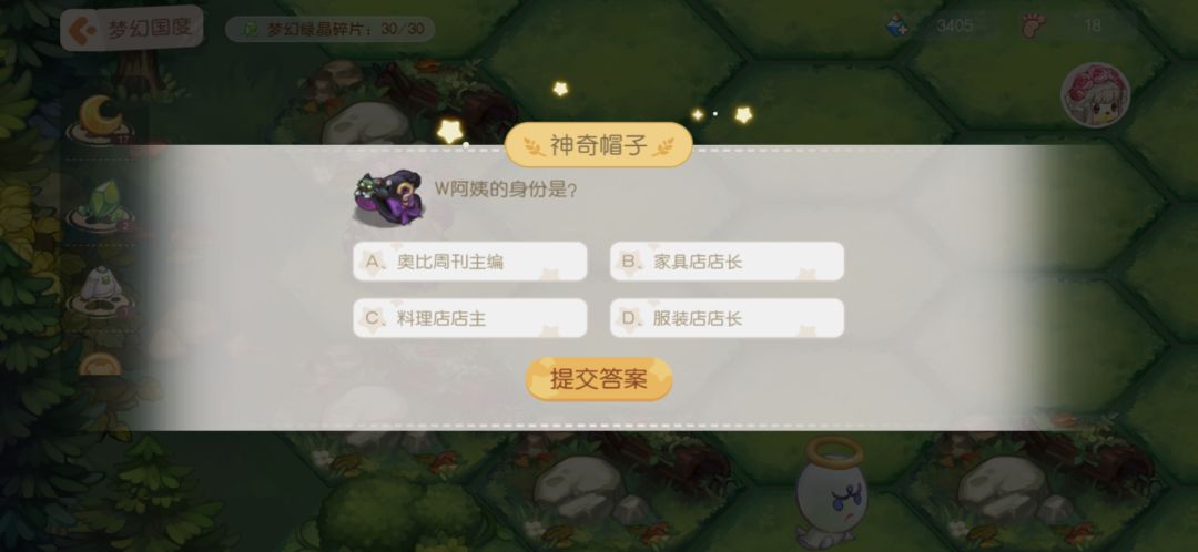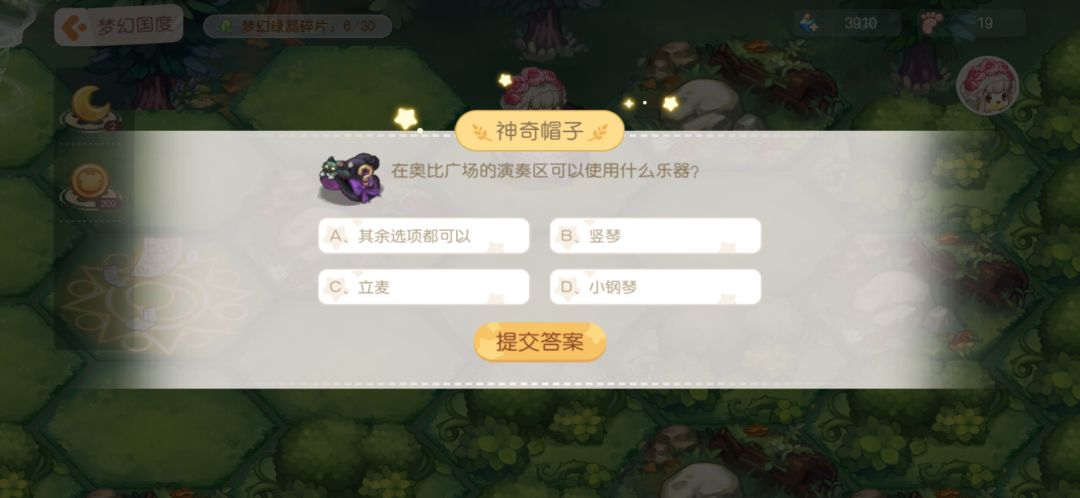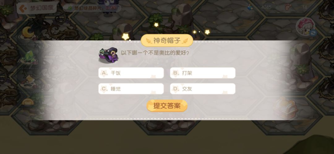 11.神奇帽子:答题,答对之后给步数和月亮结晶。下面是我见到的题目,不一定全但是遇见的我都截图了,题目挺简单,大家简单看看就能记住答案。