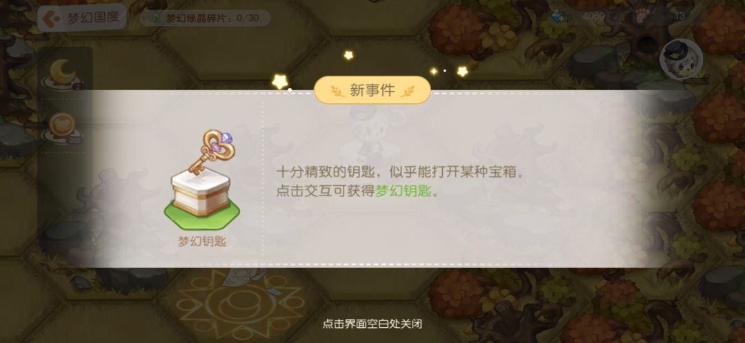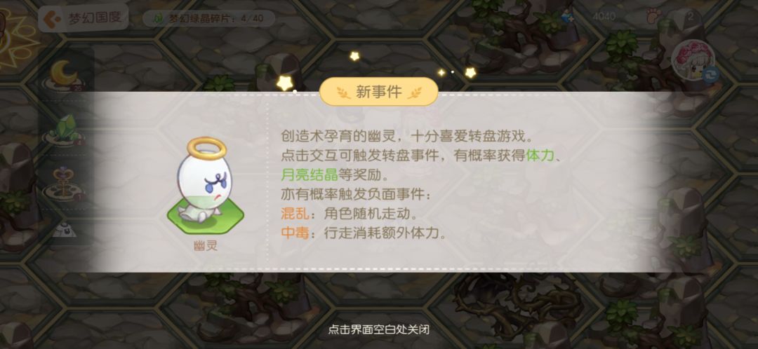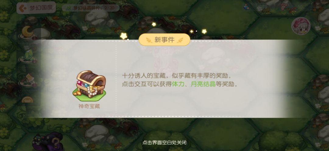 梦幻国度可以通过随机事件来获得月亮结晶和梦幻绿晶碎片。月亮结晶可以在商店中兑换衣服,绿晶碎片用来解锁剧情(下面随机事件细说)。