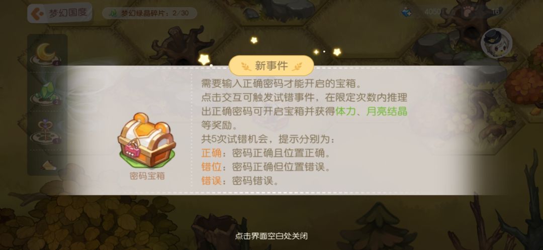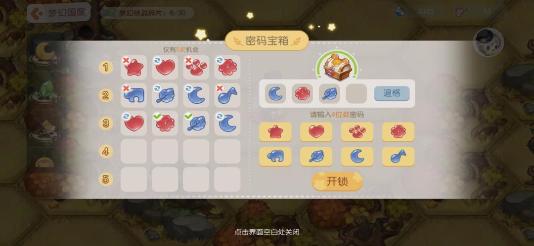 8.密码宝箱:简单推理题,破解之后获得步数和月亮结晶。
