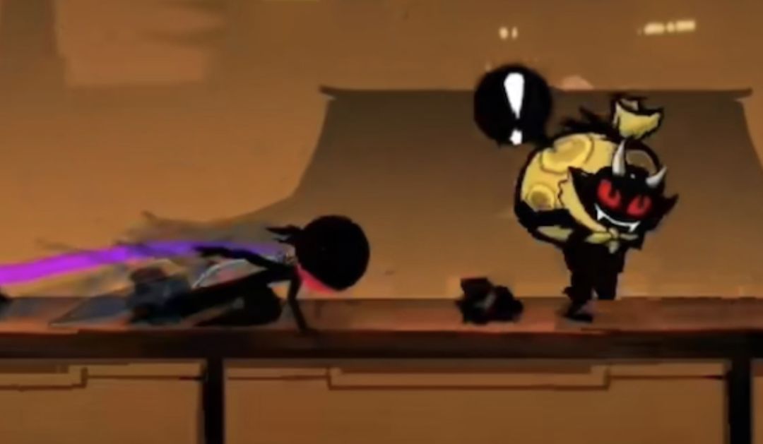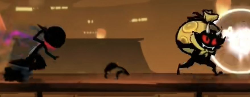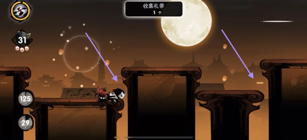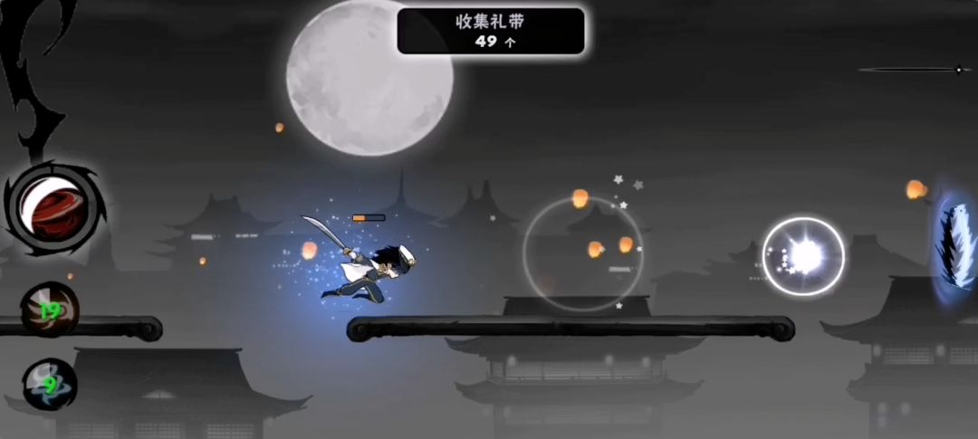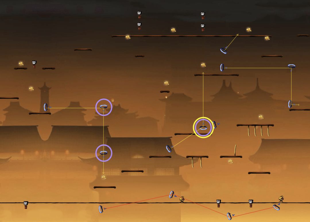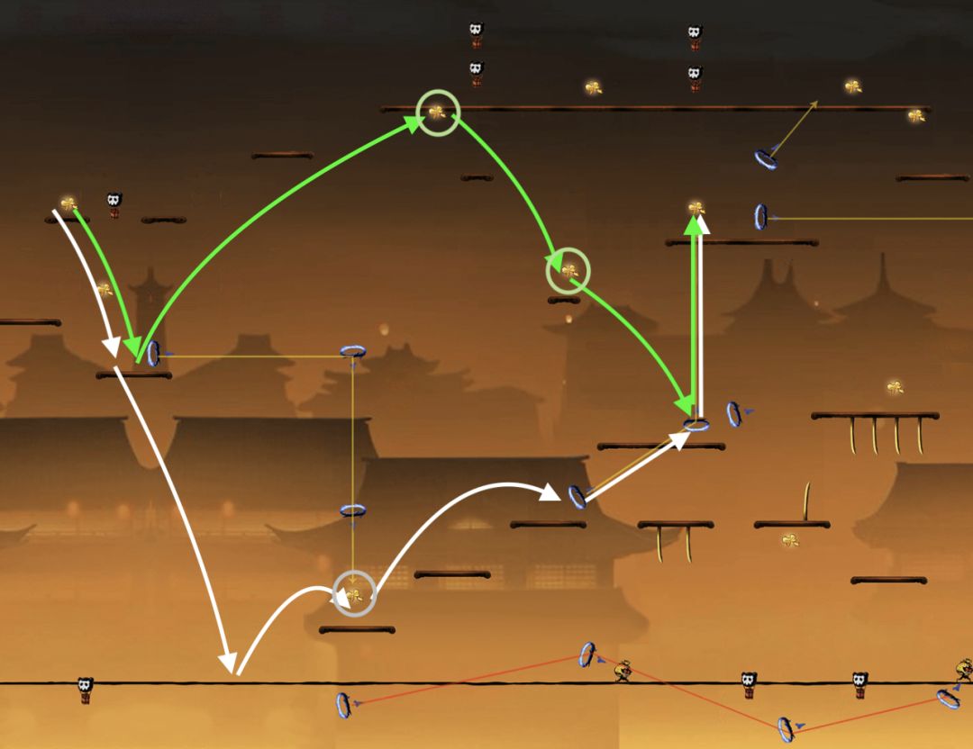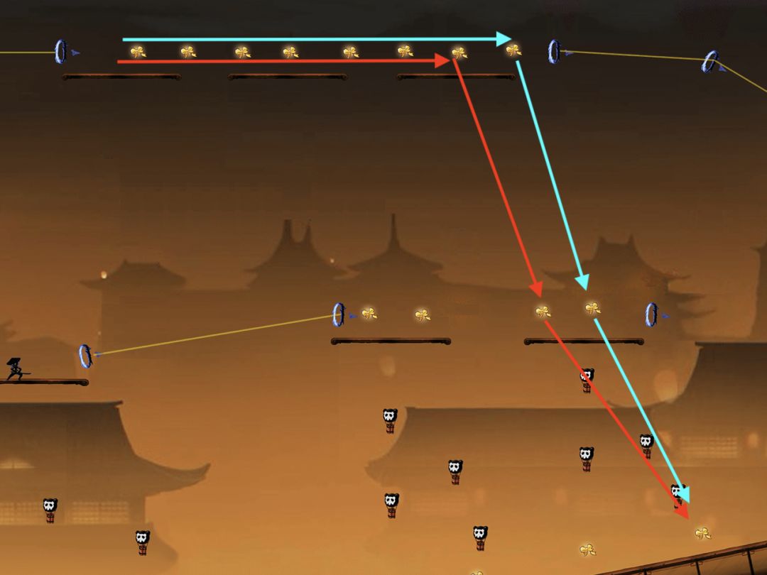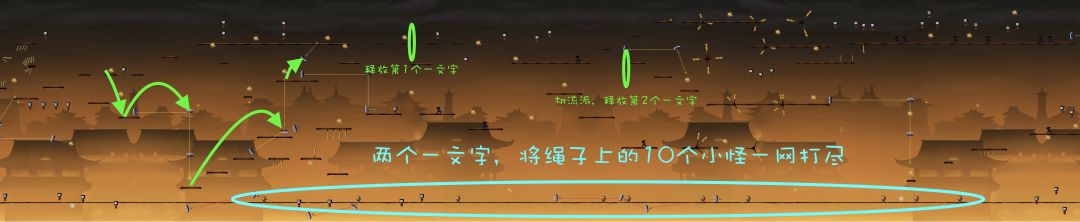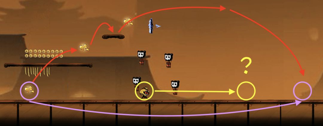 对于绳子上的小怪,如果忍者在小怪生成位点左侧很远处,即此时小怪还没有出现。若忍者处于高空状态,即忍者所处的水平线与绳子的距离非常大时,如下图: