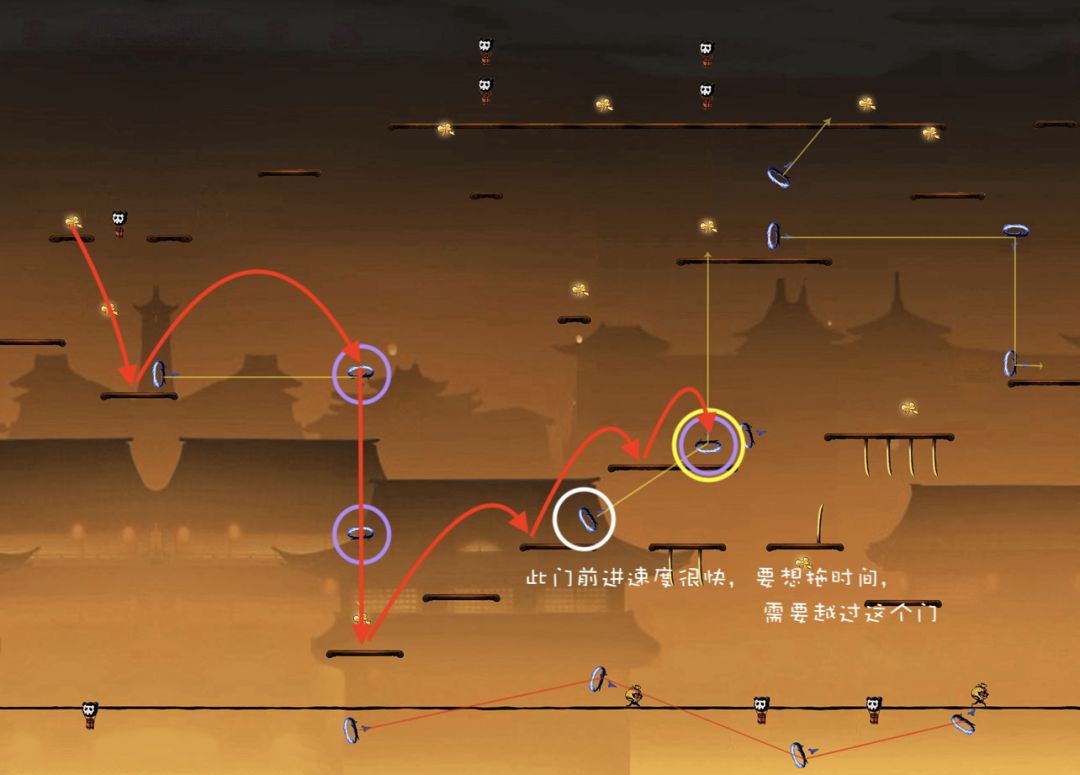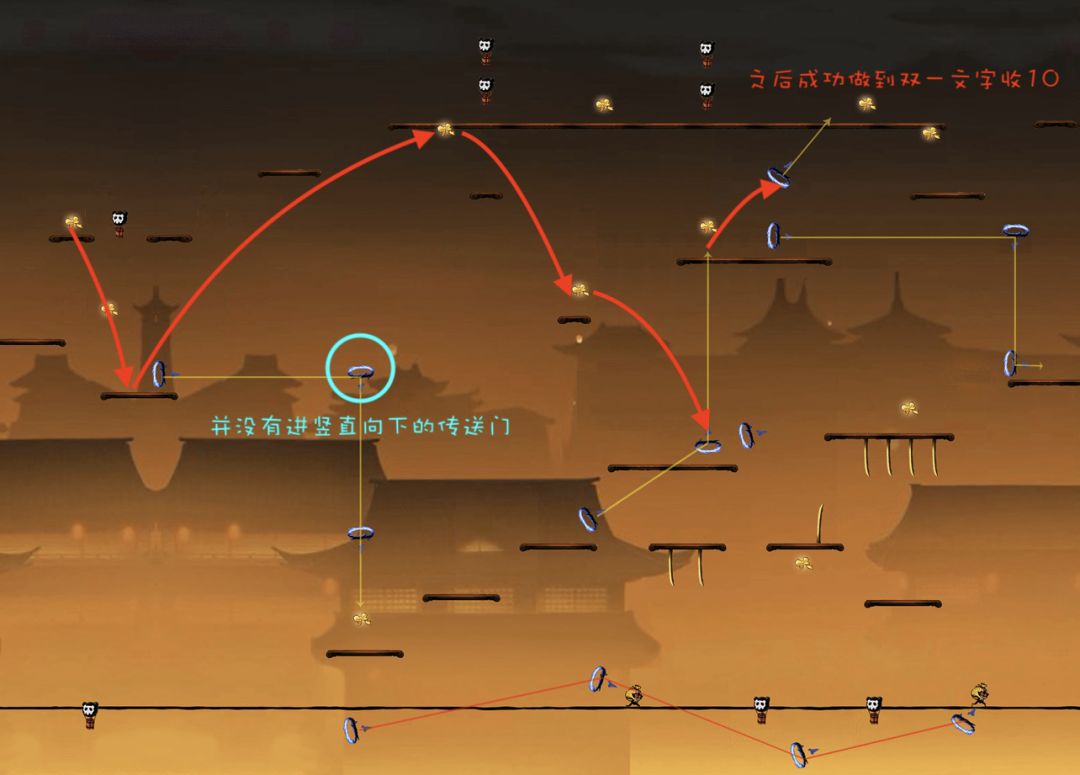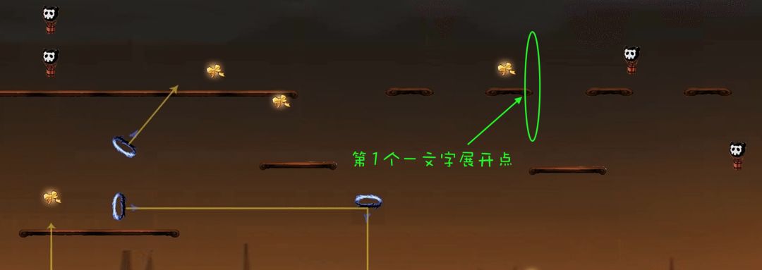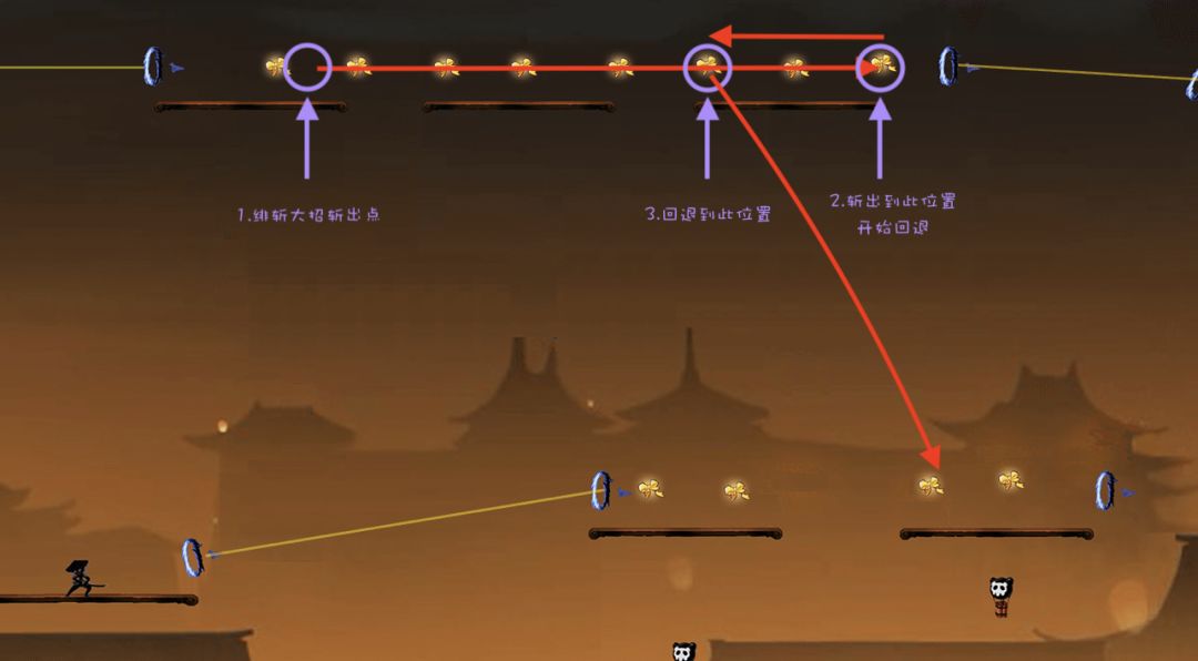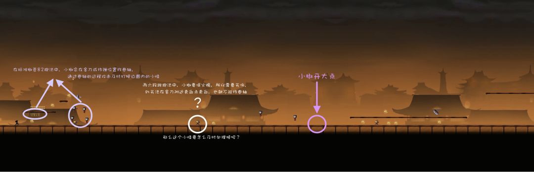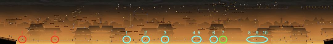 只有当忍者与小怪生成位置的水平距离低于某一个数值时,小怪才会出现。我们称这个水平距离为“现小怪最低距离”,此时忍者所处的位点称为“现小怪位点”。附上一张图: