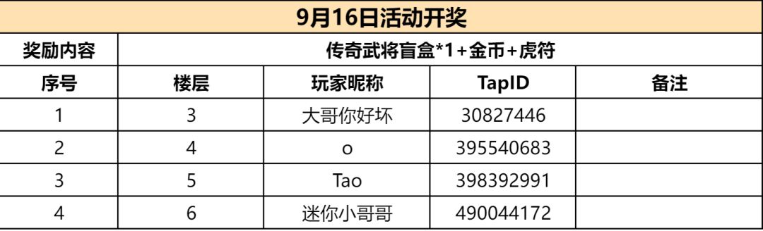 开奖啦!恭喜“大哥你好坏”、“o”等4位小伙伴获奖,请根据楼中楼的回复添加客服小姐姐的QQ,并提交活动链接、游戏昵称、游戏ID、Tap个人主页截图等信息兑奖~