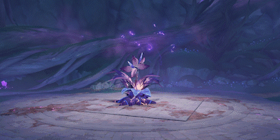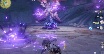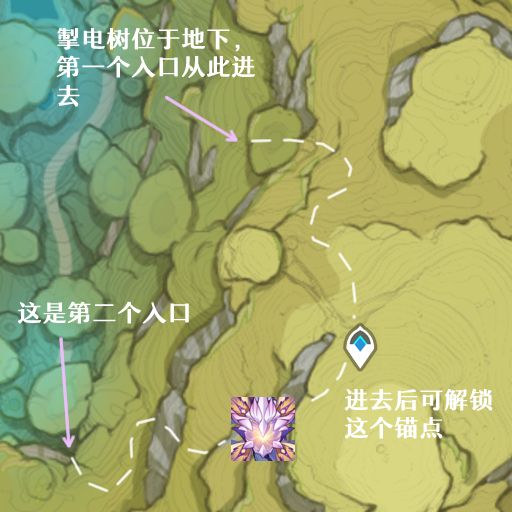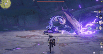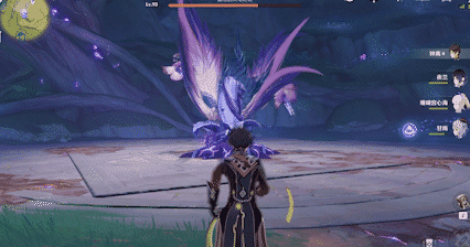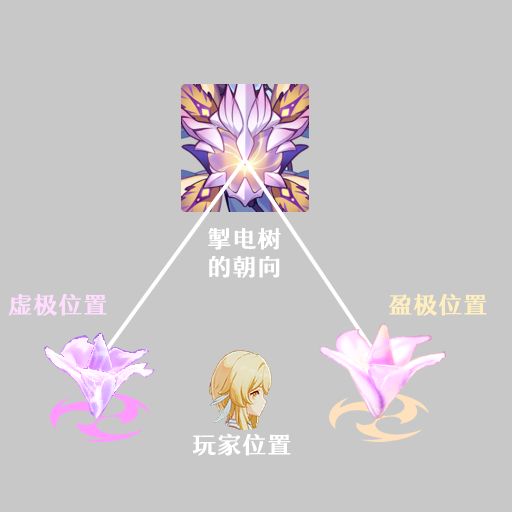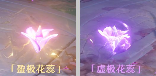 虚极花蕊:掣电树在将核心从冠部转移至根部时,会在掣电树视角的右侧种下「虚极花蕊」,外观是紫色发紫光的花朵,单个花蕊可以被被元素反应破坏,但两个一起出现的话就只能躲开了。放置花蕊没有伤害。