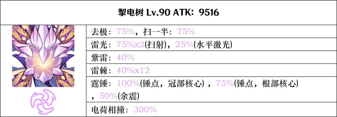 掣电树的倍率汇总表: