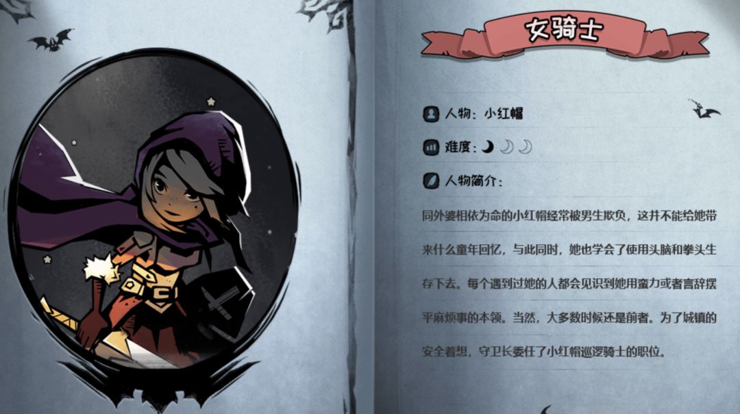 在故事设定上,小红帽之所以有那么多职业来源于悲惨的童年经历,有的是受坏孩子欺负所以锻炼了一身武艺,有的是为了打破人们偏见努力练习黑魔法。但无论哪种职业都非常有趣,每个职业都可以轻易组出3-4种思路完全不同的套路,每个套路玩出的效果、爽感也各有风骚。