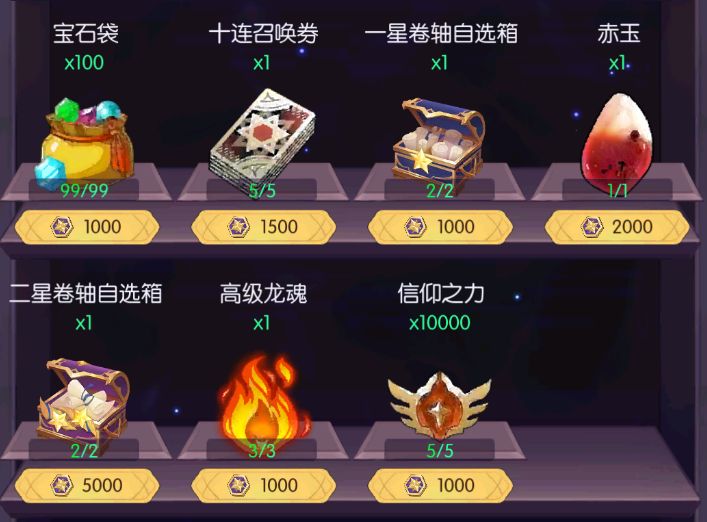 ●许愿商店:r5许愿商店新增赤玉与5w信仰,每周一刷新,至少请每周把4级神语买空来兑换赤玉信仰,其他商品,可以买空三级神语来换三个高级龙魂或者一个二星卷轴自选
