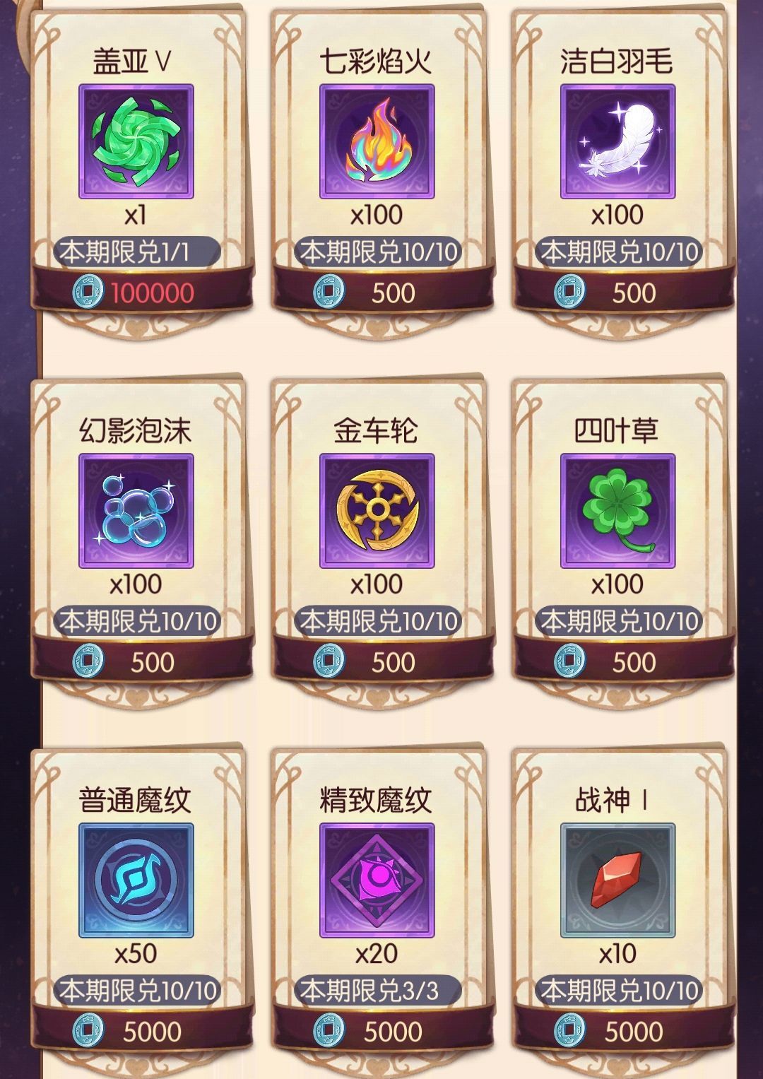 |盖亚(盖亚碎片乐园来源最多,可以不买去换神晶)