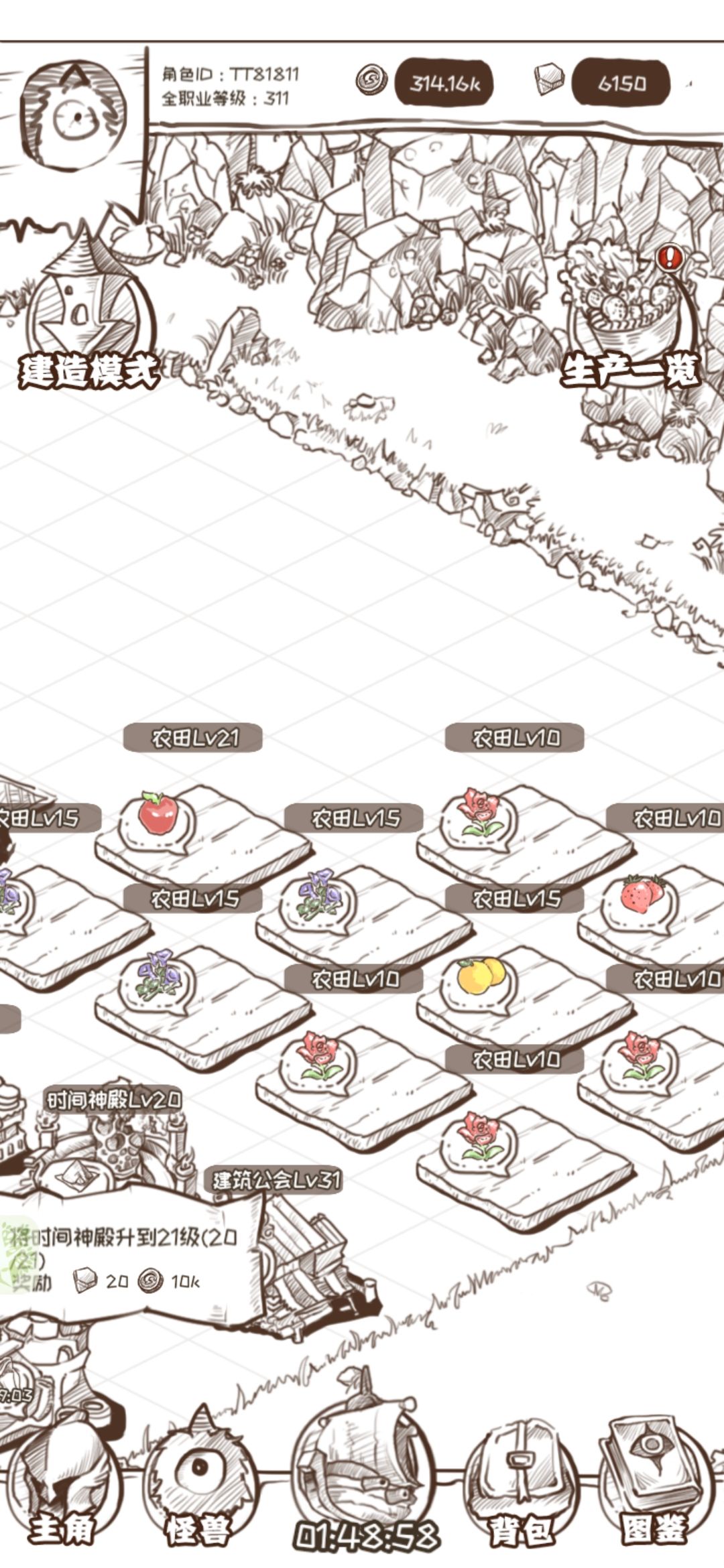 下面是我玩儿了两天半的土地,土地方面可以将多余的牧场全部收起来,收起来也会有收益,24小时放出来收获一次牧场那些就行,升级建筑工会可以增加建筑上限,最大上限为20个,第一次增加是11级,过后21级,31级依次递增,优先拉建筑工会一级田地的等级,田地5级开始可以种花🌸,旁边的任务可以不用管,有钱了一次完成