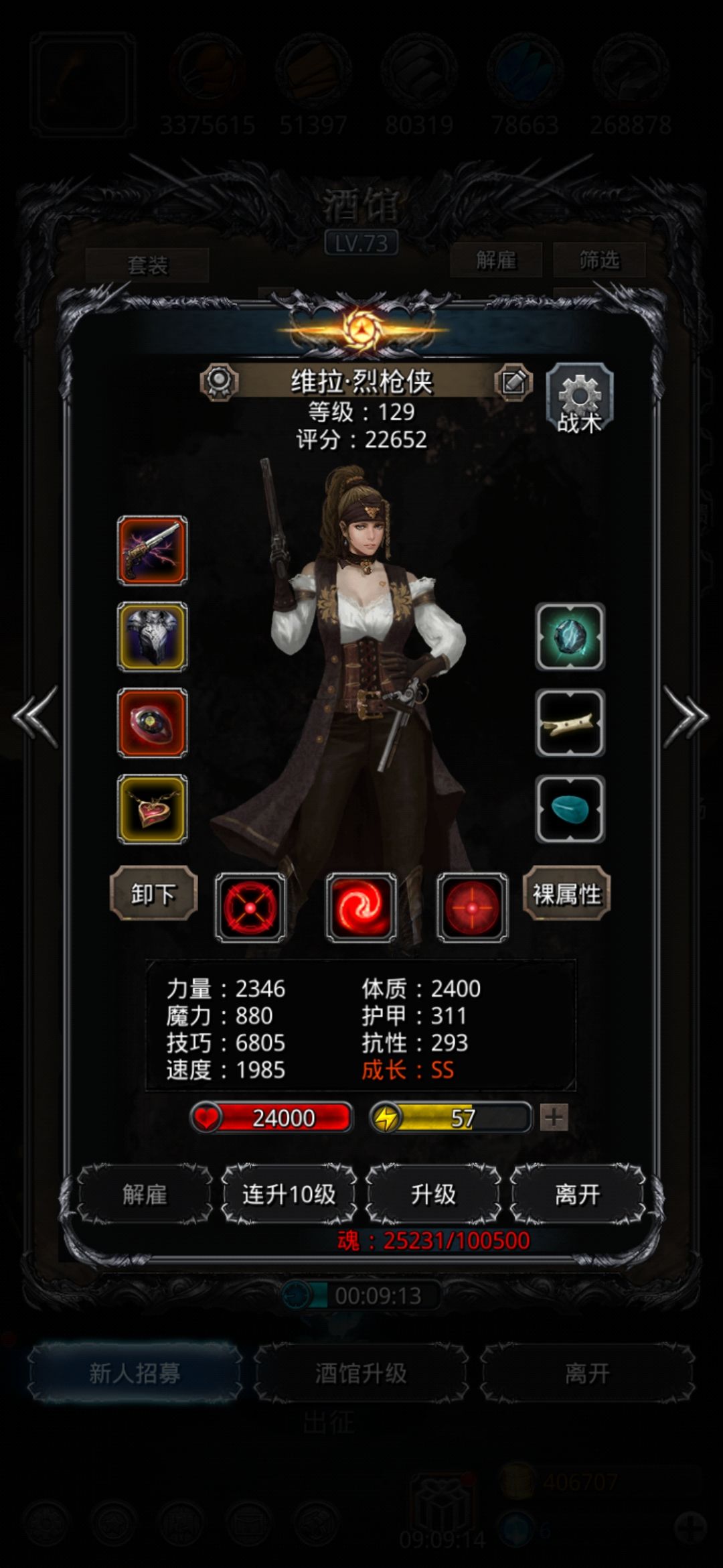 最后贴一下属性和配装,战法枪祭四柱80。