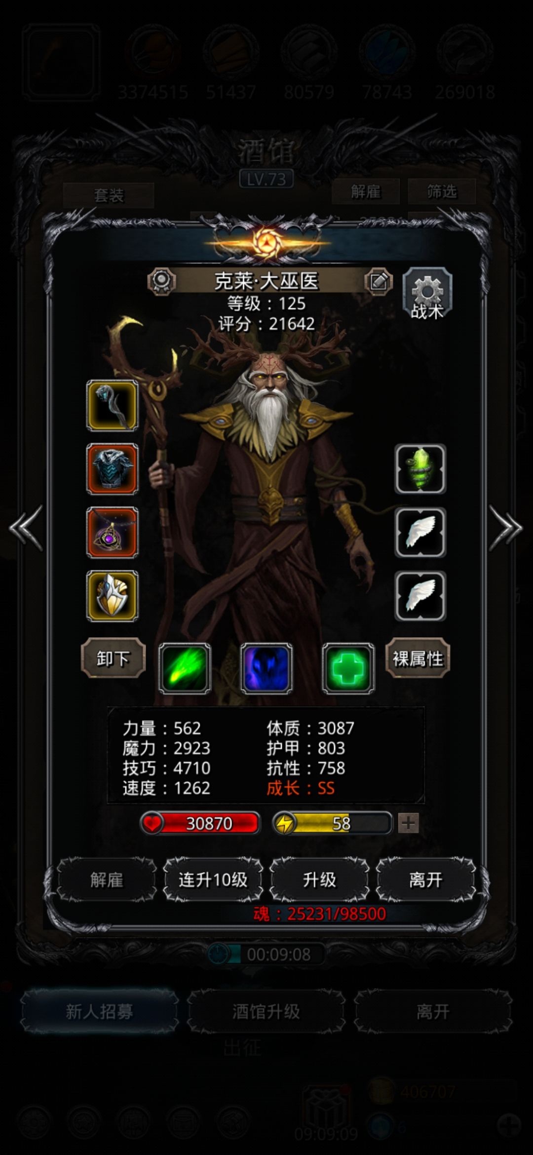 巫医55/85开局奶圣龙挂机。手动操作神官和圣龙刷专注补反击嘲讽。