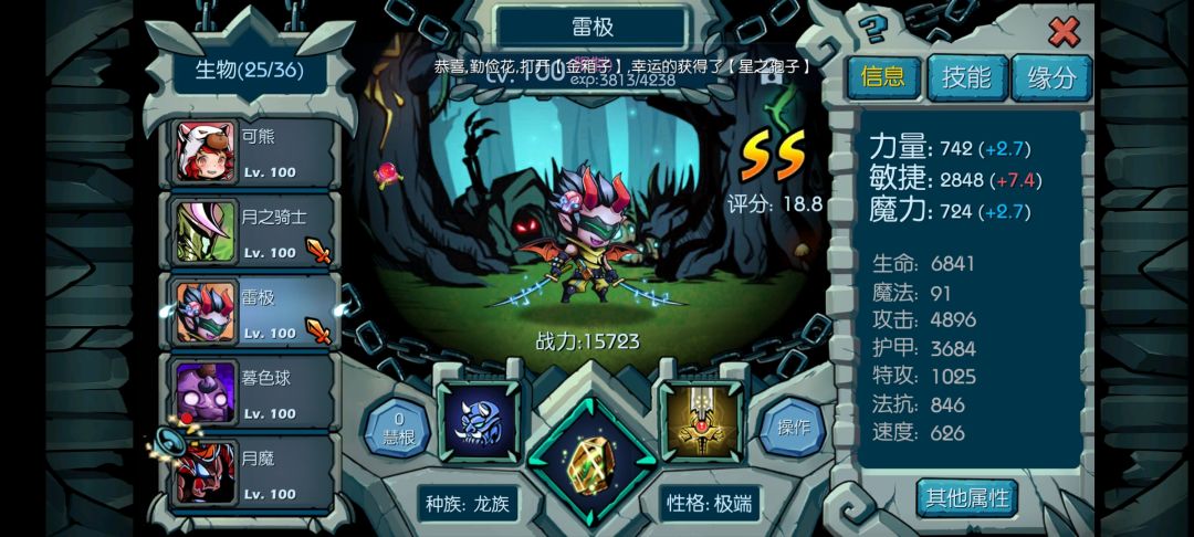 然后推荐1只迅猛怪玩(暗杀),主切后排,技能打上(追魂,迅捷,暴发,恕吼),这样的,打图和打竞技场都挺好用的,图我也找不到,便来一张吧敷衍一下吧(主要我也刚玩没有多久)![[嗒啦啦4_好耶]](https://img.tapimg.com/market/images/d378b7a8f38cae2d3dfb6170d918238b.gif)