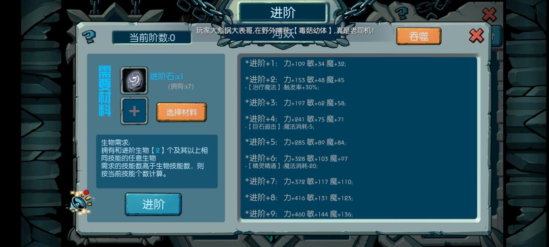 吞噬玩法是吞掉一只带有技能的宠物然后他的技能就会随机在加2,加4那里出现这就是强化技能,像你要强化那个迅猛击,你就要吞噬掉带迅猛击的宠物,那他的技能就会随机跑到加2,加4那里
