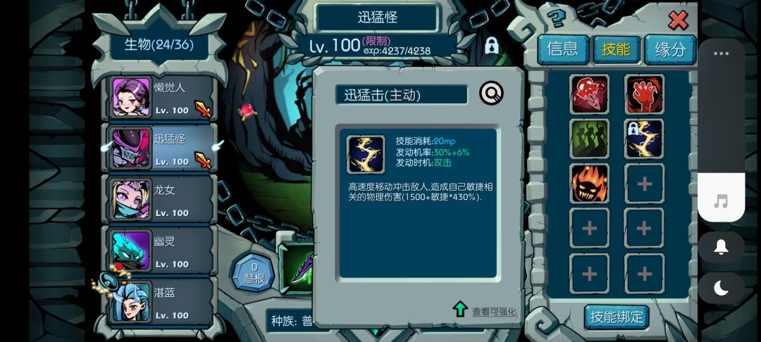 然后再搞1只(横石控制),横石能一下控一排,打图打架都挺好用的,这里推荐的是亡灵族敏捷高的带横石,技能就(魔源,迅捷,敏捷专精,不死尸魂),而且横石要进阶的加2强化才能稳定控制,