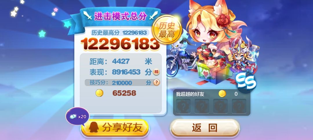 见证了天天酷跑的没落,爸妈从15年就在玩到了16年就不玩了,他们玩过的游戏也许就这一款,后来16年暑假通过表哥的介绍也成为了酷跑玩家,17年年底左右表哥就退了,一个三年老玩家退了,18年自己肝够钻石买了意义是能够“无限复活”的玫瑰少年之后也退了,上一次登录还是20年初,但是一上线各种回归礼包眼花缭乱,他们虽然是限时但已经远超16年那会的最高级装扮了……刚开局双指就已经准备好了但是这一波道具下来至少一分钟没有触屏就已经几十万分了……熟悉的音乐把我带回了那无忧无虑的小学生活以及各种回忆,那时的机子只能玩天天酷跑和某心消消乐,不要关服!会常回来跑一局的!!