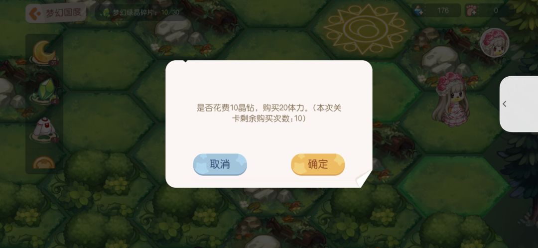 步数是10钻换20步,每关可以买十次,基本上一关如果要全探索完买一次或者两次是有可能,也可以不用买走到传送门就走,但是没什么必要买很多次(因为一次关卡里面可以探索的地方有限,买多了不会继承到下一次),每一关可以看右上角知道现在自己可以走多少步。