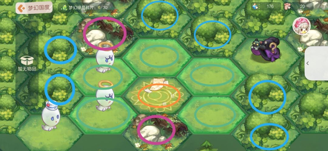 有耳朵橙色的箱子:密码箱(这个我也没截到),主要是通过8种不一样的图标去猜一个四位的组合,有可能会出现同一个图标在同一个组合里出现两次,一共五次试的机会,每一次试里面,会有三种不一样的提示,①✓,代表位置图标都正确(也有可能是重复了但是只显示✓)②一个思考的样式,表示位置错误但是图标正确③×,表示图标错误(这个地方可以去看看别人的讲解,因为我没截到图所以有点难讲,很抱歉)。