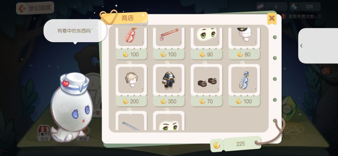 有两套服装,其中小提琴是之前和某手机品牌合作的礼品,如果之前参加过的熊熊们可以不用换,衣服的话可以看关卡里面王子和公主的样子,就是原套一模一样的,我个人认为小裙子还可以挺好看的。