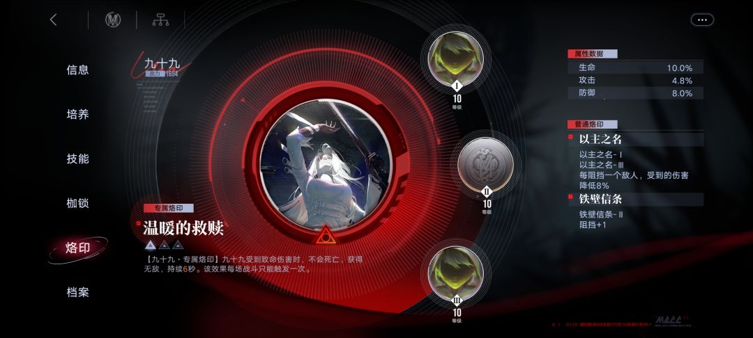 最后对99做个总结,上限没有想象中那么高,但在危级角色里算得上是不错的,如果有资源又想练一个能抗又有不错输出的前排的话可以练,但如果是缺资源最好不要去踩这个坑(想练狂暴打输出的推荐卓娅,nox)。