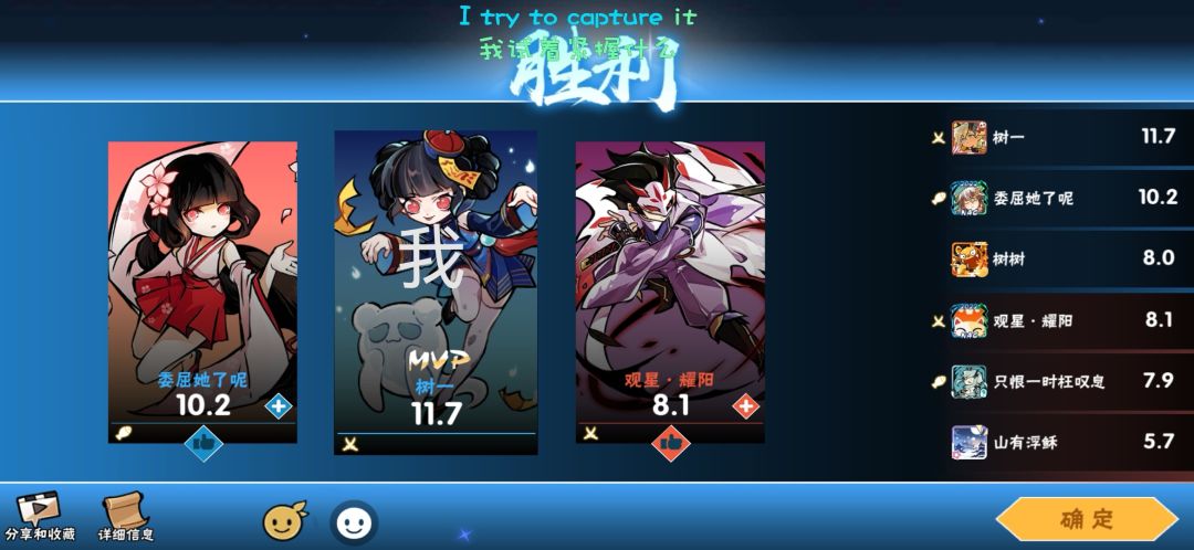 9月1号那一天我的勾玉只剩1个,而联赛也正式开始了。这是我第三次参赛,在上一届联赛,我跟随舍忧竹轩拿到了全国32强的成绩,在那时我几乎没在联赛贡献哪怕一次有效的团本成绩。 悲)所以我发誓一定要在月夜的联赛之路上贡献一份属于我的微不足道的力量。而我也做到了这一点。我在西瓜礼袋神木等团本上都在强手如林的月夜进入了前30甚至前10,并在128进64的比赛中作为月夜的先锋机甲师出场且成为了光荣的mvp。我实力不强,一个先锋的mvp就足够让我高兴很久,但是那会我真的真的非常开心。