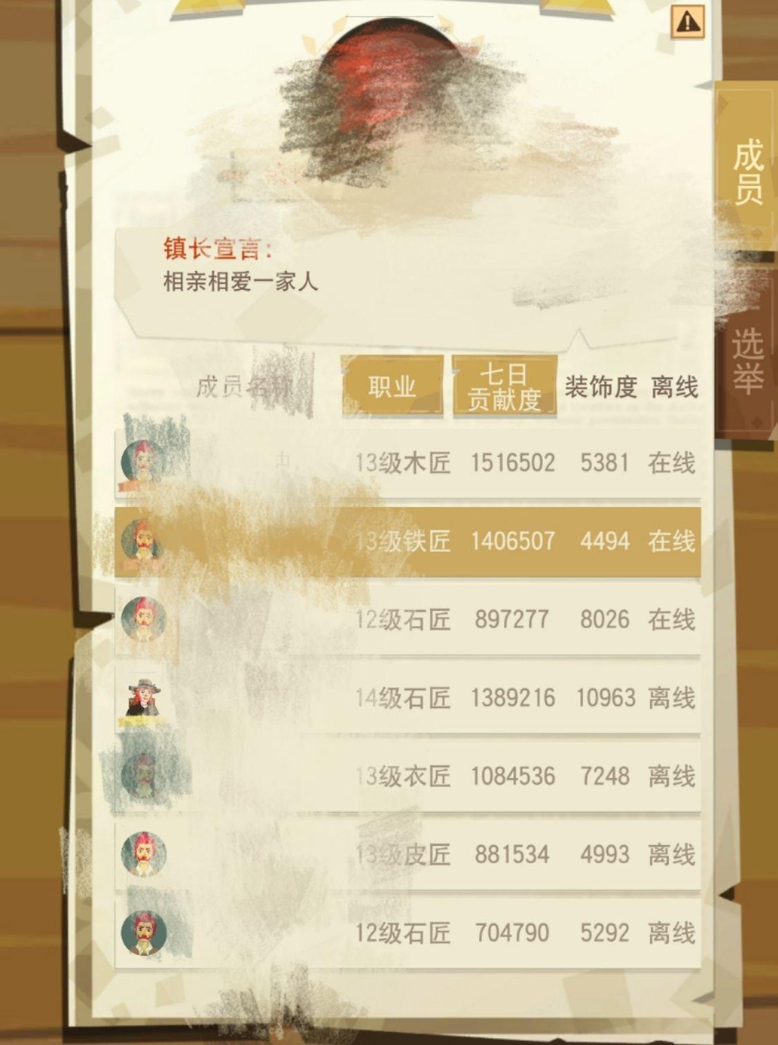 招个12级以上的木,低点的也行,镇上吃穿用不愁,皮匠家里开了自助餐厅每天都可以取腊肠,工具70耐久以上仓库数量100+个,蓝色衣服直接爆仓,工艺品你抢不到群里喊一声,石匠皮匠给你开小灶,四级建材仓库也很多。