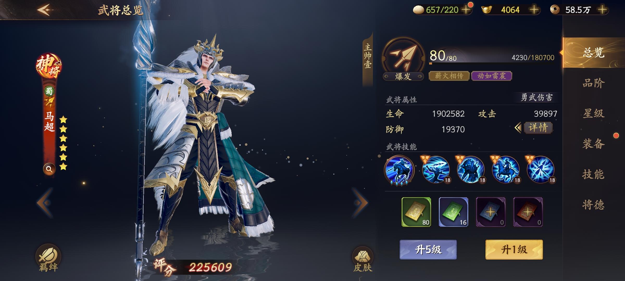 升星效果:马超每持有一层战意,该技能造成的冲锋伤害提升25%,并在开战时,立刻释放主动技能,并会额外向目标施加一层寒霜