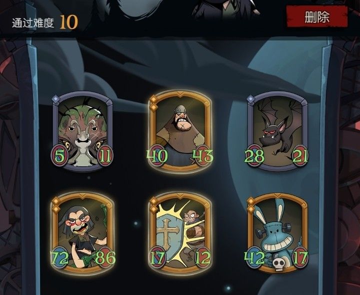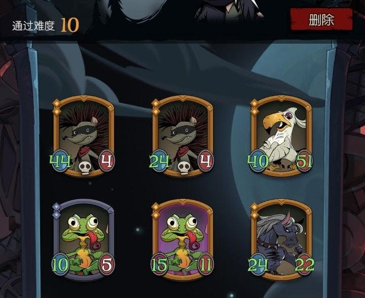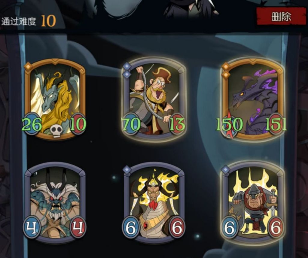 这个恰恰与上一个相反,能用金币升级直接升,不能升时金币省着花再升,务必在打11关前升到6星,难度1很轻松,前期这几张卡就可以扛过去。但还是要小心的是不要掉血,掉血也算回合,打完一关就要看下一关够不够打。
