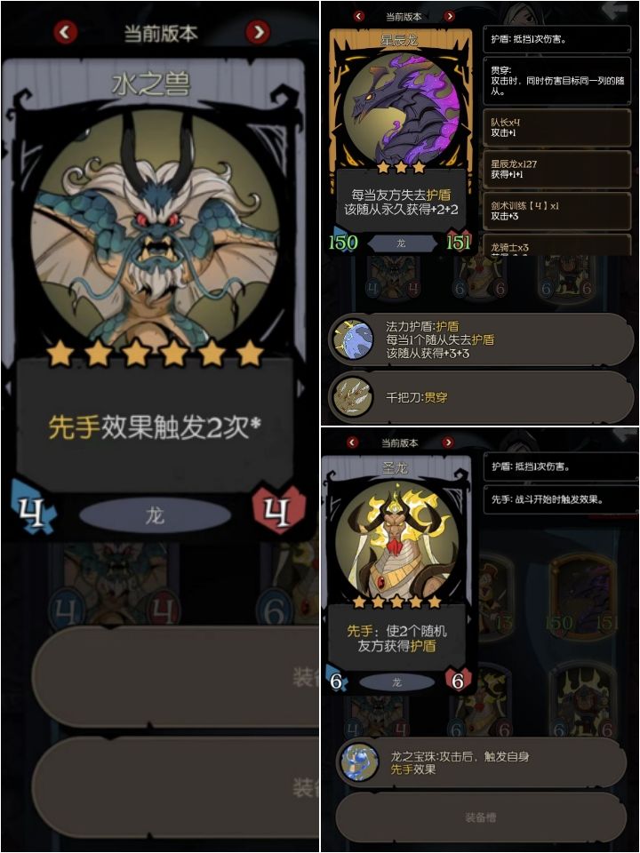 思路:通过不停地叠盾来壮大星辰龙,其实还有一个核心卡那就是持盾战士,能更好的展示圣龙(龙之宝珠)+水之兽的妙用,只不过我没找到,没有关系,本流派的主力输出还是星辰龙。没有多重护盾,依旧可以扛起大旗。