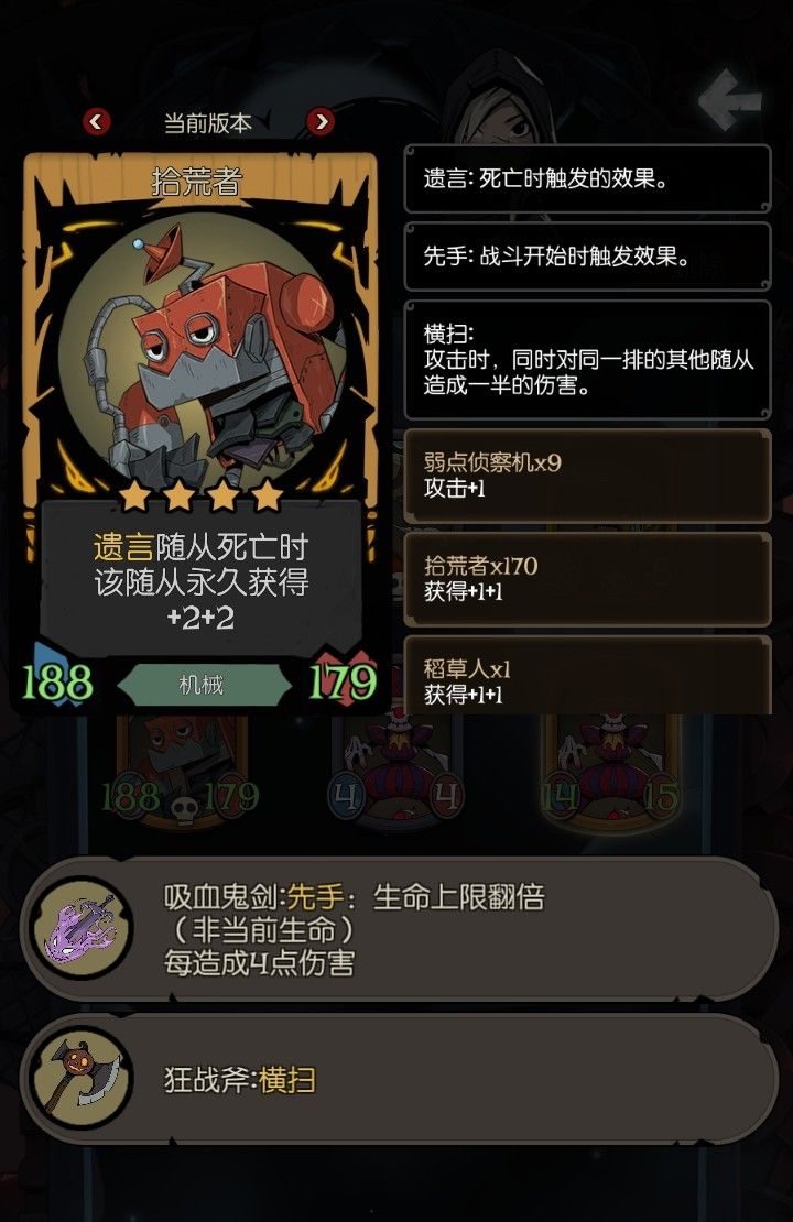 思路:通过遗言随从死亡获得永久buff。开局必拿机器人,3星前期拿机械兔能干趴一大堆身材怪。