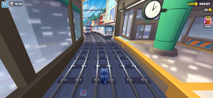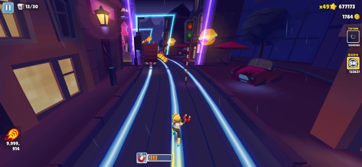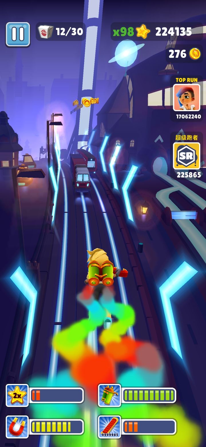 比于国服,国服地铁跑酷玩家可以享受高分带来的成就感,所有玩家处于同一个排行榜,体验感更丰富,有pvp,道具赛,可以联机。