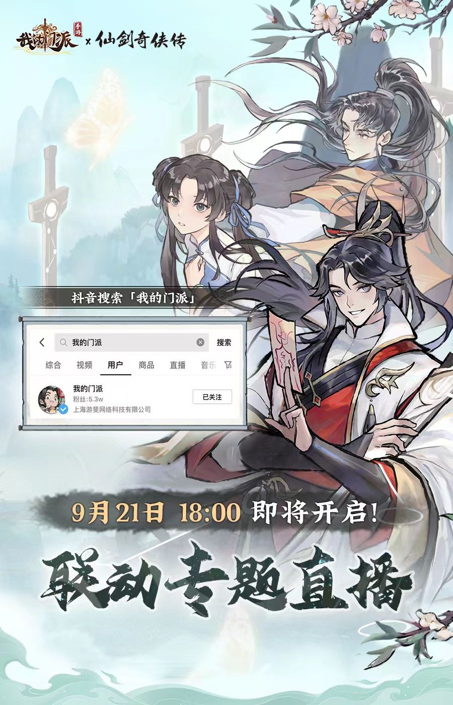 9月21日18:00,锁定抖音直播间「我的门派」,快和小师弟一起摆好小板凳,抢好前排位置吧~~~