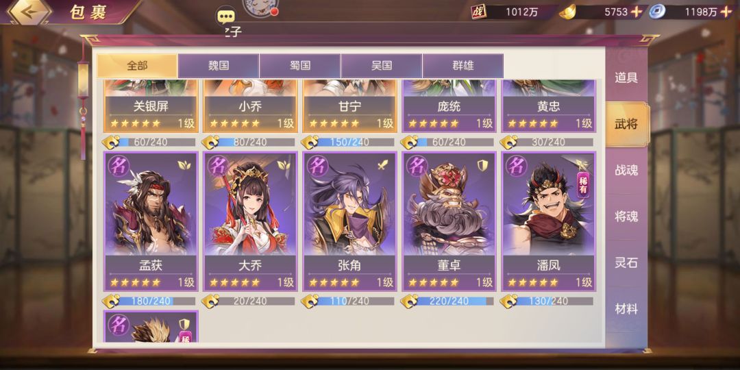 剩下的看运气,诸葛亮是两星貂蝉三星