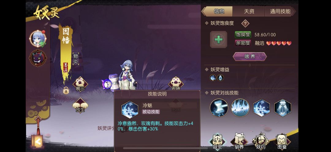 因番的被动给角色增加30爆伤40技能攻击力,但是实际加成只有一个30的爆伤,那40的技能攻击力是完全吃不到,在外面妖灵上阵的属性跟团本妖灵上阵的爆伤加成是一样的,下阵妖灵或者妖灵阵亡减少的爆伤是相差不大的的,唯独没有40技能攻击力,自从我抽到因番这40的技能攻击力就一直没有,这40攻击力让吃了?没有抽到之前我的技能攻击力跟现在是差不了多少的,我抽它就是看上它的加成,整这出以后谁还去抽