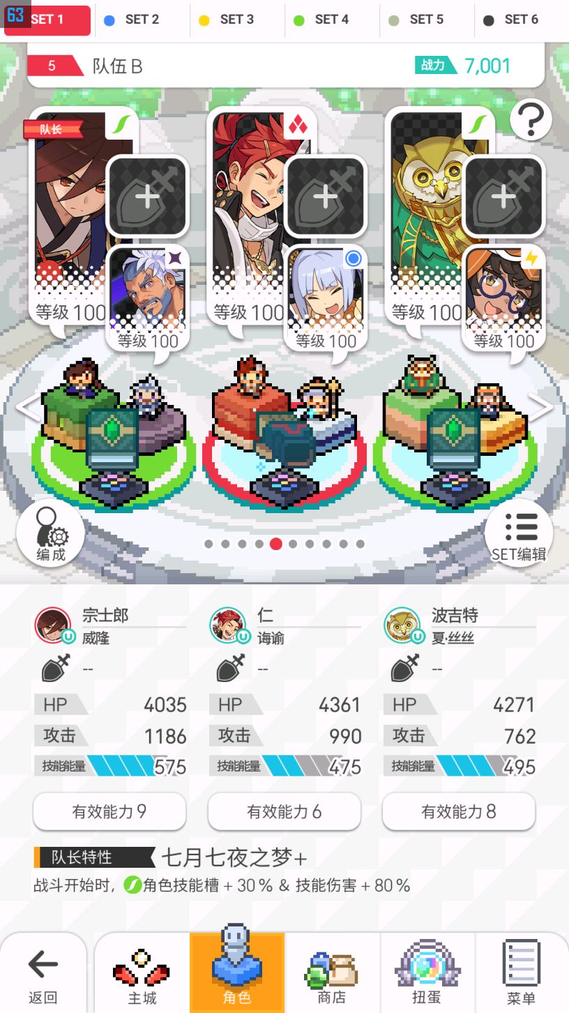 (2)推图配队:在下图的模板中,六个角色的地位与替换为: