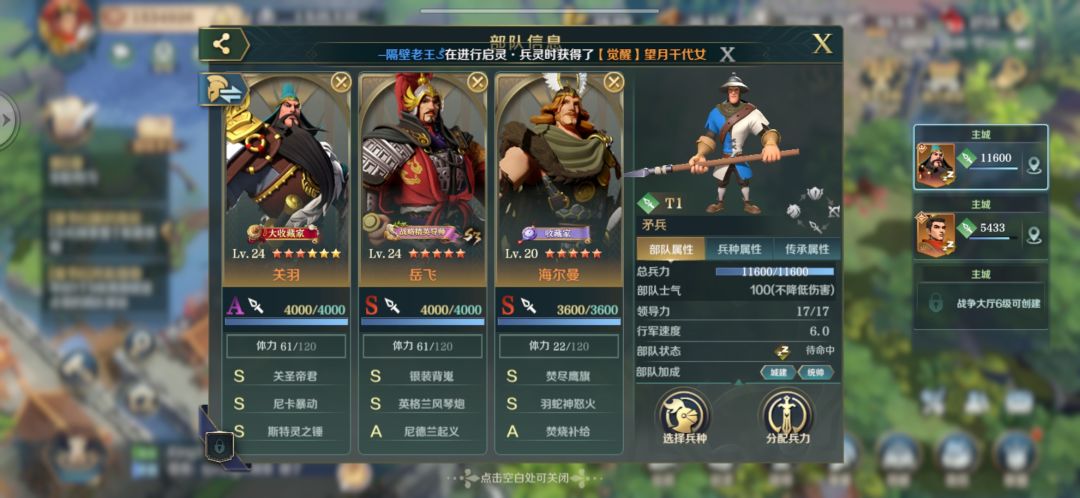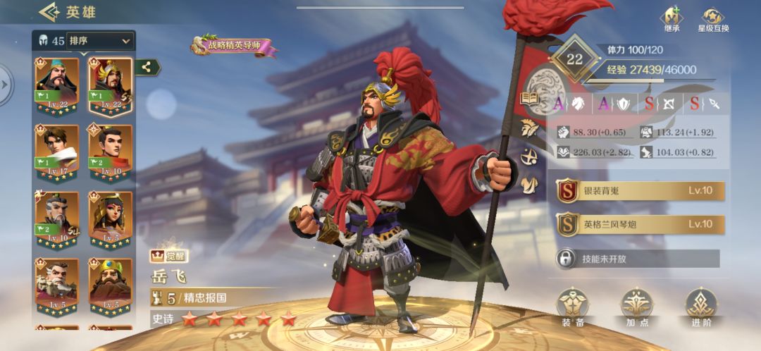 5星,领导力5,兵种适应性觉醒后骑兵和弓兵达到S级,枪兵A级,盾兵B级
