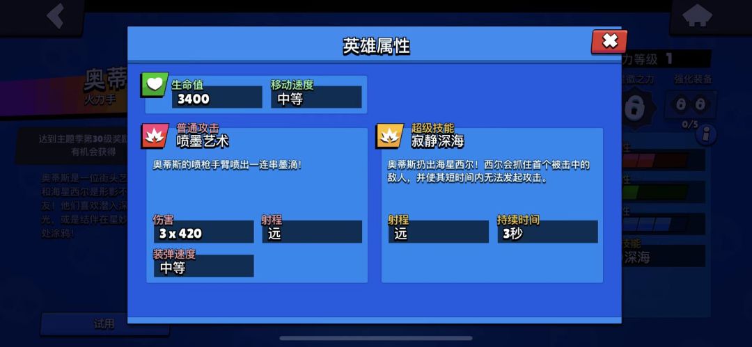 奥蒂斯是火力手,适合远距离作战,他的技能之一—喷墨艺术(普通攻击),是通过奥蒂斯的喷枪手臂喷出3发墨滴!但是使用时弹道末尾散较为严重,而且随机性很高,比较容易打空。
