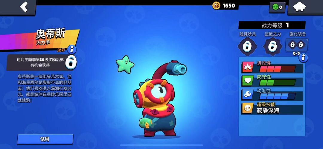 奥蒂斯的技能二—超级技能寂静深海比较牛,奥蒂斯扔出海星西尔!西尔会抓住首个命中目标,使其在短时间内无法攻击。奥蒂斯这项技能在1V1单挑时利于不败之地。