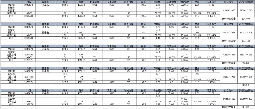 虽然看起来机械臂+斩裂剑有一些收益,但是会导致暴击值下降,需要一些其他地方补足,所以实际效果估计和双工厂是差不多的(双工厂在有脉冲的情况下,1200符文能量以上会优于双神话)