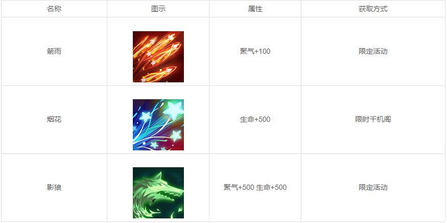14、新增了3个足迹: 箭雨、烟花、影狼;