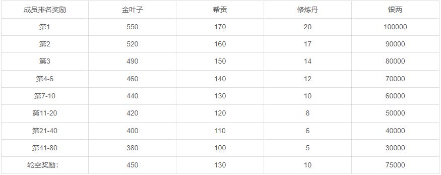 普通帮派战奖励